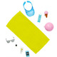 • Additional accessories include a visor, sunglasses, watch, towel, water bottle, sunscreen lotion and smartphone