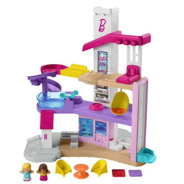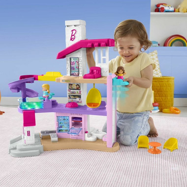 Toddlers can explore the iconic Barbie home, sized just right for their little hands and packed with toddler-friendly pretend play, with the Barbie Little DreamHouse interactive playset by Little People. Featuring 3 floors of play, this playhouse is loaded with hands-on fun, including a moving elevator, rotating clothes-closet, a light-up pool with slide, and 4 activation points for kids to press for fun lights, music, and realistic sounds.