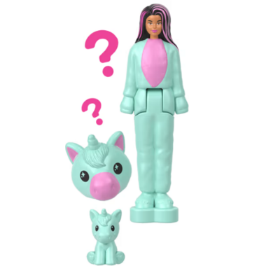 Enter the world of Barbie doll with Mini BarbieLand -- a place to imagine big and Dream in Mini! With Mini BarbieLand Cutie Reveal dolls, there's hugely cute unboxing and a teeny surprise. Open the small tube, pull out the mini doll costumed as an animal plush, then remove the head to reveal the doll's look -- so adorable! There's also a matching mini pet. Which doll will you reveal? Each 1.5-inch doll bends at the waist and stands on a heart-shaped base that fits into Mini BarbieLand playsets (sold separately). Also use the mini packaging tube to store the doll. Fans ages 4 years and older will want to collect all these cute dolls to build their own mini world! Each sold separately, subject to availability. Colors and decorations may vary.