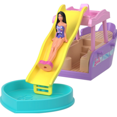 - This playset includes a small-scale recreation of the iconic Barbie Dream Boat with a 1.5-inch doll, accessories and a wow color-change moment!