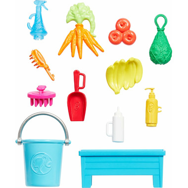 - Accessories include a feeding bin and food, a bucket, scooper, brush, and more for storytelling play!