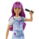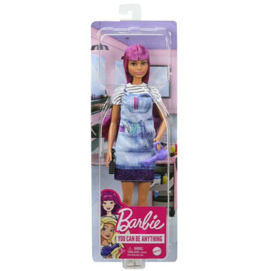 Explore a world of hairstyling fun with the Barbie salon stylist doll! When a girl plays with Barbie, she imagines everything she can become, and if you love cutting and styling hair, you can be a salon stylist! The Barbie salon stylist doll (12-in/30.40-cm) wears a cute striped tee and a tie-dye smock, comfy shoes and has long purple hair. She comes with a blow dryer and brush (clips let the doll hold them) plus two hair clips. Kids will love the endless possibilities for creative expression and storytelling fun. Doll cannot stand alone. Colours and decorations may vary. Makes a great gift for ages 3 years old and up.