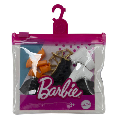 - Barbie doll loves to express herself from head to toe, and this shoe pack lets her step out in style for any adventure!