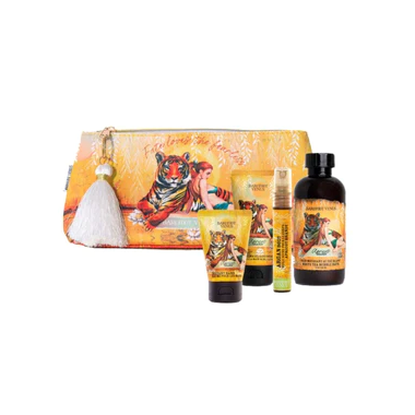 Mini essentials with major benefits. A collection of this intoxicatingly warm, fruity and subtly sweet fragrance in a whimsical bag for all your little luxe. Created WITH: Macadamia Nut Oil, Shea Butter, Sweet Almond Oil, Elder Flower Extract, Silk Amino Acids.