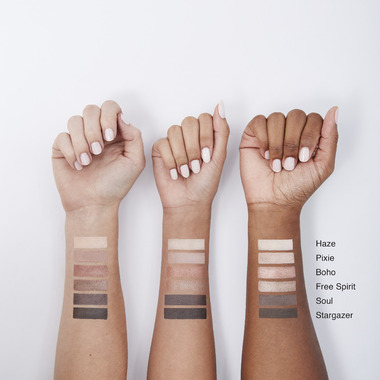 Stargazer: Mica, Boron Nitride, Caprylic/Capric Triglyceride, Oryza Sativa (Rice) Extract, Lauroyl Lysine, Borago Officinalis Seed Oil, Cucumis Sativus (Cucumber) Fruit Extract, Alaria Esculenta Extract, Lithothamnion Calcareum Extract, Magnesium Myristate, Caffeine, Mannitol, Diatomaceous Earth, Silica, Zinc Sulfate, Chlorphenesin. May Contain (+/-): Titanium Dioxide (Ci 77891), Carmine (Ci 75470), Iron Oxides (Ci 77491, Ci 77492, Ci 77499), Bismuth Oxychloride (Ci 77163), Copper Powder (Ci 77400), Ferric Ferrocyanide (Ci 77510), Manganese Violet (Ci 77742), Ultramarines (Ci 77007), Yellow 5 Lake (Ci 19140). Pixie, Soul: Mica, Oryza Sativa (Rice) Extract, Boron Nitride, Lauroyl Lysine, Magnesium Myristate, Silica, Caprylic/Capric Triglyceride, Borago Officinalis Seed Oil, Cucumis Sativus (Cucumber) Fruit Extract, Alaria Esculenta Extract, Lithothamnion Calcareum Extract, Caffeine, Mannitol, Diatomaceous Earth, Zinc Sulfate, Chlorphenesin. May Contain (+/-): Titanium Dioxide (Ci 77891), Carmine (Ci 75470), Iron Oxides (Ci 77491, Ci 77492, Ci 77499), Bismuth Oxychloride (Ci 77163), Copper Powder (Ci 77400), Ferric Ferrocyanide (Ci 77510), Manganese Violet (Ci 77742), Ultramarines (Ci 77007), Yellow 5 Lake (Ci 19140). Boho: Mica, Oryza Sativa (Rice) Extract, Boron Nitride, Lauroyl Lysine, Magnesium Myristate, Caprylic/Capric Triglyceride, Borago Officinalis Seed Oil, Cucumis Sativus (Cucumber) Fruit Extract, Alaria Esculenta Extract, Lithothamnion Calcareum Extract, Caffeine, Mannitol, Diatomaceous Earth, Tin Oxide, Silica, Zinc Sulfate, Chlorphenesin. May Contain (+/-): Titanium Dioxide (Ci 77891), Carmine (Ci 75470), Iron Oxides (Ci 77491, Ci 77492, Ci 77499), Bismuth Oxychloride (Ci 77163), Copper Powder (Ci 77400), Ferric Ferrocyanide (Ci 77510), Manganese Violet (Ci 77742), Ultramarines (Ci 77007), Yellow 5 Lake (Ci 19140). Free Spirit: Mica, Oryza Sativa (Rice) Extract, Boron Nitride, Magnesium Myristate, Lauroyl Lysine, Caprylic/Capric Triglyceride, Borago Officinalis Seed Oil, Cucumis Sativus (Cucumber) Fruit Extract, Alaria Esculenta Extract, Lithothamnion Calcareum Extract, Caffeine, Mannitol, Diatomaceous Earth, Silica, Zinc Sulfate, Chlorphenesin. May Contain (+/-): Titanium Dioxide (Ci 77891), Carmine (Ci 75470), Iron Oxides (Ci 77491, Ci 77492, Ci 77499), Bismuth Oxychloride (Ci 77163), Copper Powder (Ci 77400), Ferric Ferrocyanide (Ci 77510), Manganese Violet (Ci 77742), Ultramarines (Ci 77007), Yellow 5 Lake (Ci 19140). Haze: Mica, Boron Nitride, Oryza Sativa (Rice) Extract, Caprylic/Capric Triglyceride, Silica, Lauroyl Lysine, Magnesium Myristate, Borago Officinalis Seed Oil, Cucumis Sativus (Cucumber) Fruit Extract, Alaria Esculenta Extract, Lithothamnion Calcareum Extract, Caffeine, Mannitol, Diatomaceous Earth, Zinc Sulfate, Chlorphenesin. May Contain (+/-): Titanium Dioxide (Ci 77891), Carmine (Ci 75470), Iron Oxides (Ci 77491, Ci 77492, Ci 77499), Bismuth Oxychloride (Ci 77163), Copper Powder (Ci 77400), Ferric Ferrocyanide (Ci 77510), Manganese Violet (Ci 77742), Ultramarines (Ci 77007), Yellow 5 Lake (Ci 19140)