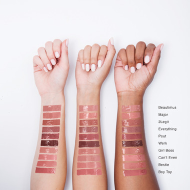 Nude liquid lipstick with a moisturizing formula, full-coverage color and a high shine finish.