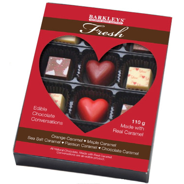 Barkley's Edible Chocolate Conversations are all natural and gluten free chocolates made with real caramel, the perfect gift for your valentine! Chocolates come in a gift box with 12 "Edible Chocolate Conversations" on the chocolates including sayings "Hug Me", "Choose Me", I Love You", and "Kiss Me".