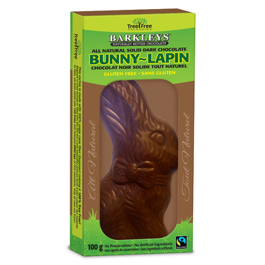 Hippity hop! Here comes Peter Cottontail... in the form of a delicious, all natural chocolate bunny from Barkley's!
