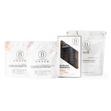 Awaken your true inner beauty with this Bath Beauty Ritual. Includes: Mineral Milk Bath 250g, 120g Crush Ancient Oat Hydration, 120g Crush Eucalyptus Apothecary & Charcoal Konjac Sponge.