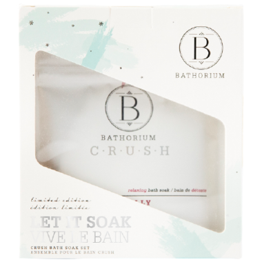 The holidays are here! Bring the festivities to your tub with our three limited-edition holiday Crush soaks. Enjoy three custom blended holiday inspired Crush bath soaks. This gift is sure to land you on the Nice list. 1 x 120g Mistletoe + Holly 1 x 120g Balsam Fir + Frankincense 1 x 120g Vanilla Cream Pre-Wrapped in a Beautiful Box Set