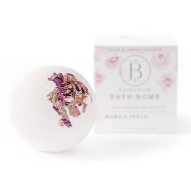 This new luxury Bathorium bomb will have you in the good books all year long. This fizz releases a cascade of orange, rose and ylang ylang essential oils along with skin softening sea salts and hydrating cocoa butter. Coconut milk creates a creamy frothy lather and real rose petals float subtly to the surface, truly creating an escape for mom. Light fragrance of gardenia and geraniums put the mind to ease, escape to the garden of Mama's Perch.