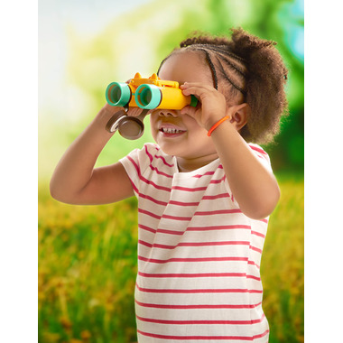 Zoom into fun with the Adventure Scout Binoculars from Battat! Kid-friendly and colorful, this working pair of binoculars turns everyday play into an epic expedition. Just pop open the silly lens caps and adjust for your kiddo. These binoculars fit all kids, so they're also easy to share! Next, use the knob to see a clear image and the world is your oyster. Play a game of backyard Spy, go on a scavenger hunt, or see which critters you can find in the trees there are so many fun and creative ways to play with these durable binoculars. No matter how kids explore, the Adventure Scout Binoculars encourage them to dive into their imaginations and play outside.