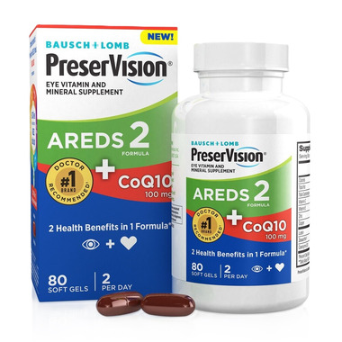 Preservision AREDS2 + CoQ10 is a 2-in-1 formula to help maintain eyesight in conditions such as AMD and to help support cardiovascular health