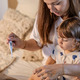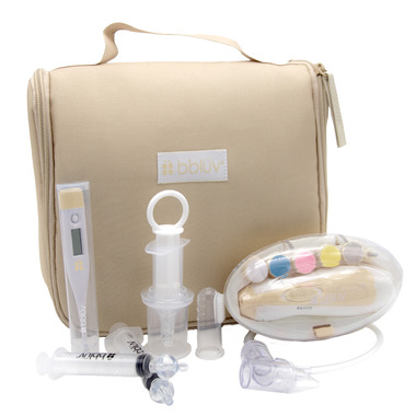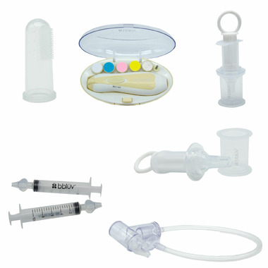 Contains 6 care essentials: digital thermometer, electric file, nasal aspirator, syringes, finger toothbrush and pacifier dispenser.
