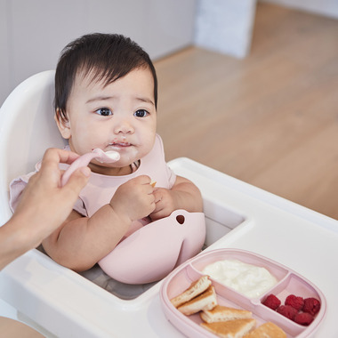The 2-in-1 suction plate is a modular mealtime hero! Designed to grow and adapt with your child, this plate is suitable from first feeds through to independent eating.