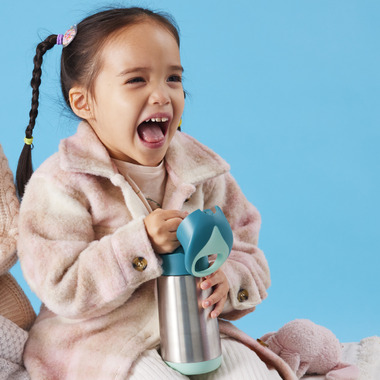 Cool has been redefined with the insulated drink bottle. The triple layer insulation keeps liquids cool for up to 8 hours and warm for up to 6, so now your little one can stay hydrated whatever the weather. Complete with carry handle and push button opening, designed specifically for little hands. Clean modern design and big kid aesthetic. Kids love the easy drinking silicone straw top. Parents love no leaks in the bag (when the lid is closed). If using to keep liquids warm - for best performance, fill the stainless steel base with hot water for a few minutes to warm it, before pouring water out and filling with warm liquids.