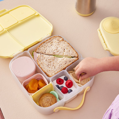 The whole foods lunchbox. Kids love different choices throughout the day, so b.box designed a lunchbox that offers parents and kids more flexibility. The lunchbox features a large compartment that fits a whole sandwich. Plus, sitting underneath the tray is an included gel cooler pack to keep food fresher and cooler for longer. Or, remove the sandwich tray and the compartment now easily fits pasta and salads.