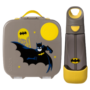 b.box Tritan Drink Bottle Batman (600mL): Made from Tritan, the unique big kids drink bottle is ideal for kindy and school kids. Its unique triangle shape bottle is designed specifically for little hands, making it easier for kids to grip. Easy push button pops open the lid, keeping straw tops hygienic when closed and never goes astray. Spill-proof bite valve straw top prevents accidental spills. Robust carry handle makes it easy for kids to carry and remove out of school bags. Its 600ml capacity and angled silicone straw lets kids drink to the very last drop and stay hydrated throughout the day. Minimal parts and ultra easy to assemble / disassemble and clean. Plus, customize the look with removable bumper.
