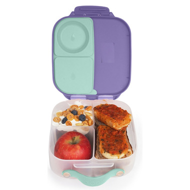 All the features you love in this original lunchbox but packed a little lighter for smaller appetites.  The mini lunchbox may be compact, but it has plenty of space for healthy whole food lunch options. The flexi whole fruit holder stretches around fruit so you can secure large fruits inside the lunchbox. 2 leak-proof compartments seal separately so packing a mixture of wet and dry foods such as puree, yoghurt and dips has never been easier.