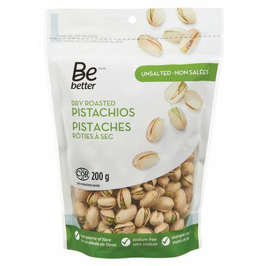 Unsalted Dry Roasted Pistachios in a 200g resealable bag.