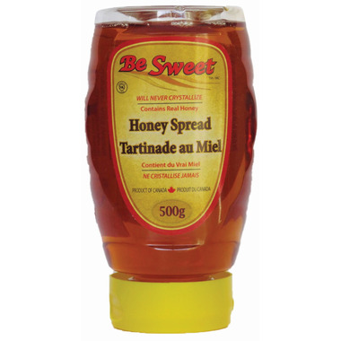 Be Sweet will never crystallize. Contains real honey. Product of Canada.