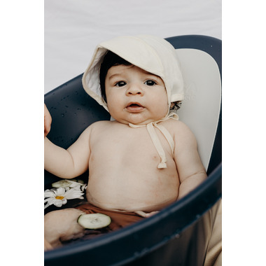 The multi-award winning BEABA x Shnuggle Baby Bath makes baby bath time easier and safer. The beautiful design with smooth curves and flowing roll top is perfectly shaped for your baby from birth (stage 1) right up to 12 months (stage 2). The bathtub features an integrated bum bump that helps to support your baby while they recline in the early months, giving parents both hands free to wash and play with baby. When baby starts to sit forward (stage 2), the bum bump gives support and confidence to sit up, making bath time not only more comfortable but a time to develop essential sitting skills. The large foam backrest is soft and warm to touch, letting your baby can enjoy a longer bath without getting cold. The small size makes it ideal to use in the bath, shower, kitchen sink or on the floor and as it is lightweight to easily carry when filled with water.