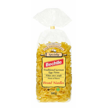 Bechtle Broad Noodles are traditional German egg pasta made with cage free eggs and pure durum semolina.