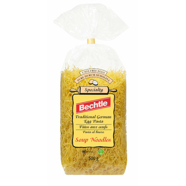 Bechtle Soup Noodles are traditional German egg pasta made with cage free eggs and pure durum semolina.