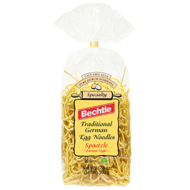 Bechtle Traditional German Egg Noodles Bavarian Spaetzle, Farmer Style, are made from cage free eggs and pure Durum Semolina.