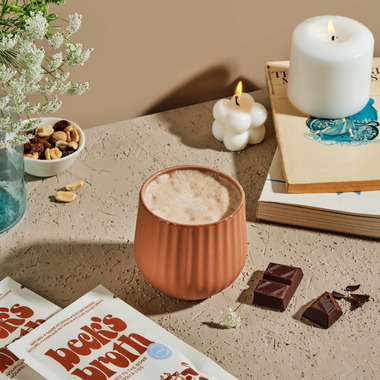 Nourishment meets decadence. This bone broth hot chocolate is a deliciously drinkable way to enjoy the benefits of bone broth, bringing you a relaxing cup of nourishment with 14g of clean protein in a smooth cacao base. With a rich and creamy texture, this hot chocolate is the perfect way to start your morning or enjoy throughout the day.