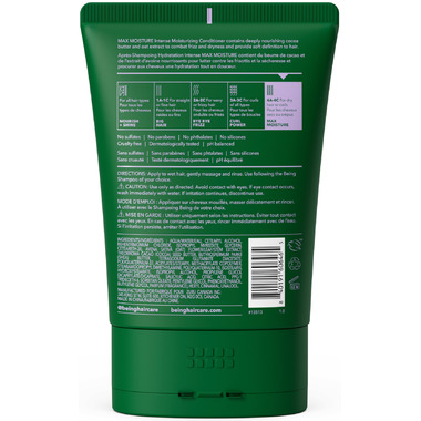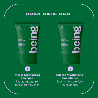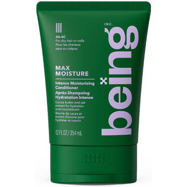 Being MAX MOISTURE Intense Moisturizing Conditioner is for hair in need of an intense hydration boost, whether coily (type 4A-4C) or otherwise dry. This dermatologically tested, sulfate-free and silicone-free formula contains naturally derived ingredients such as Cocoa Butter and Oat Extract to combat dryness, providing deep nourishment and soft definition to dry hair or coils.