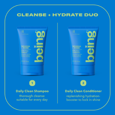 Being NOURISH + SHINE Daily Clean Shampoo is an all-rounder daily cleanse that suits all hair types, focused on nourishing strands and making them shine. This dermatologically tested, sulfate-free and silicone-free formula contains naturally derived ingredients such as Shea Butter and Aloe Extract for a gentle yet thorough wash. Hair is left feeling hydrated and balanced with optimal shine.