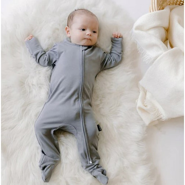 Footed sleeper made in soft bamboo rayon for the perfect night sleep. Bamboo is very breathable and moisture wicking which makes it the ideal fabric for infant sleepwear. 2-way zipper closure makes for easy diaper changes while fold over cuffs and chin guard keep baby safe from scratches and pinches.