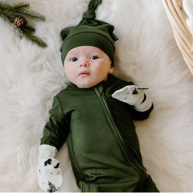 Adjustable knotted hat, designed to keep baby warm without overheating with tempature regulating bamboo fabric.