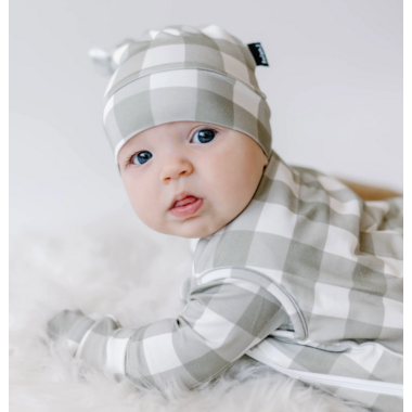 Adjustable knotted hat, designed to keep baby warm without overheating with tempature regulating bamboo fabric.