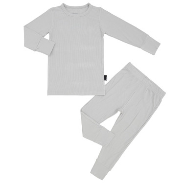 Belan.J Ribbed Bamboo Long Sleeve PJ Set Silver Cloud