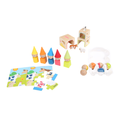 Each activity encourages the development of fine motor skills, hand–eye coordination, early problem-solving, and sensory exploration. The toys are made from high-quality, child-safe materials and feature simple shapes, bright colors, and engaging textures that capture young learners’ attention while supporting independent play.