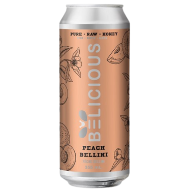 Belicious Peach Bellini Sparkling Honey beverage made with pure raw honey.