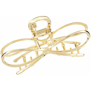 Designed with a graceful bow silhouette and a polished gold metallic finish, it brings a playful yet elegant flair to any look. Whether you're dressing up for a special occasion or adding a hint of sparkle to your everyday outfit, this clip is the perfect finishing touch.