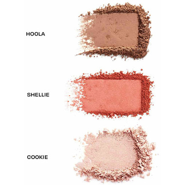 Directions: Sweet cheeks! Swirl Hoola all over face for a natural-looking bronze. Sweep Shellie on cheeks. Apply Cookie along cheekbones for a gorgeous glow.