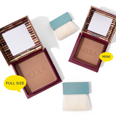 In a mini size! Dust on Benefit Cosmetics’ iconic Hoola Matte Bronzer across the chin, cheeks, and forehead for a healthy, natural-looking tan that flatters any skin tone. Complete with a soft, natural-bristle cheek brush, it delivers pure matte colour—without leaving behind shine or shimmer. It’s ideal for fair complexions or for use as an all over finishing powder, and it instantly warms your complexion, leaving you with a healthy-looking, believable glow year round. The finely milled matte bronzer blends on smoothly and seamlessly.