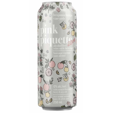 Piquette Zero is a lively and delicious alcohol-free wine-style beverage. Not identical to wine, this new sensory experience is to be discovered for its own unique deliciousness. Luminous salmon color with a rose hue. The nose is a meadow-like medley of floral and botanical notes brightened with zesty citrus undertones. The palate has suggestions of freshly cut herbs and grapefruit rind for an exhilarating sense of freshness.