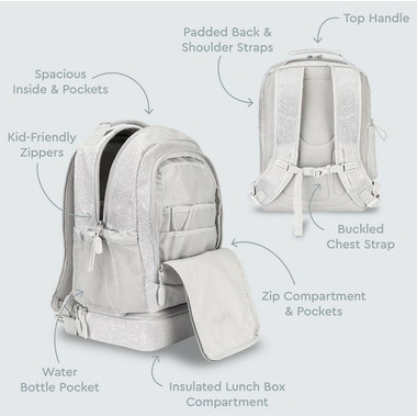 Bentgo Kids 2-in-1 Backpack & Lunch Bag Silver Glitter
