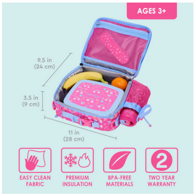 - MULTIPLE CARRYING OPTIONS: When you need customization, the kid's lunch bag delivers. A padded handle allows for comfortable carrying, or an adjustable padded strap easily fits around your child's shoulder. Alternatively, the lunch bag features built-in D-ring attachments that connect to a backpack for hands-free transport.