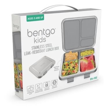 Bentgo Kids Stainless Steel is the first stainless steel bento-style lunchbox with leak-resistant technology. This durable lunch solution makes packing healthy meals easier for the family and better for the environment. It's a sleek solution for sending your child to school with a fresh, healthy, portion-perfect lunch.