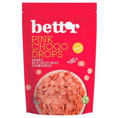 Bett'r Choqo Drops Pink are made with cocoa butter and organic strawberry powder to create a delicious, sweet, fruity combination that's almost too good to be true! These strawberry white chocolate chips are vegan, organic, and delicious—and they're super easy to use in any recipe that calls for chocolate chips.