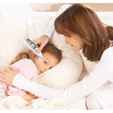 A real all-rounder! In addition to ear and forehead measurement, the thermometer can also determine surface temperatures. The temperature alarm and the date and time display are perfect additions for simple and convenient measurement.