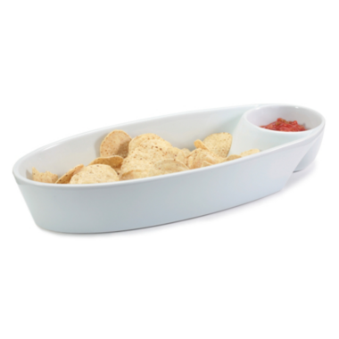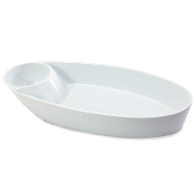 BIA's Oval Crudite Server, with integrated dipping bowl. Made from white porcelain. Microwave and dishwasher safe.