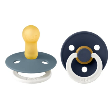 Bibs Pacifiers are a Must HAVE! BIBS Colour is the original BIBS pacifier and has been on the market for over 40 years. It has the signature round BIBS shield with three vent holes and round BIBS engraved handle ring. The anatomically shaped nipple is curved at the top for a natural fit to the babys palate with an angled tip for easy tongue placement.