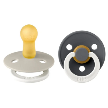 Bibs Pacifiers are a Must HAVE! BIBS Colour is the original BIBS pacifier and has been on the market for over 40 years. It has the signature round BIBS shield with three vent holes and round BIBS engraved handle ring. The anatomically shaped nipple is curved at the top for a natural fit to the babys palate with an angled tip for easy tongue placement.